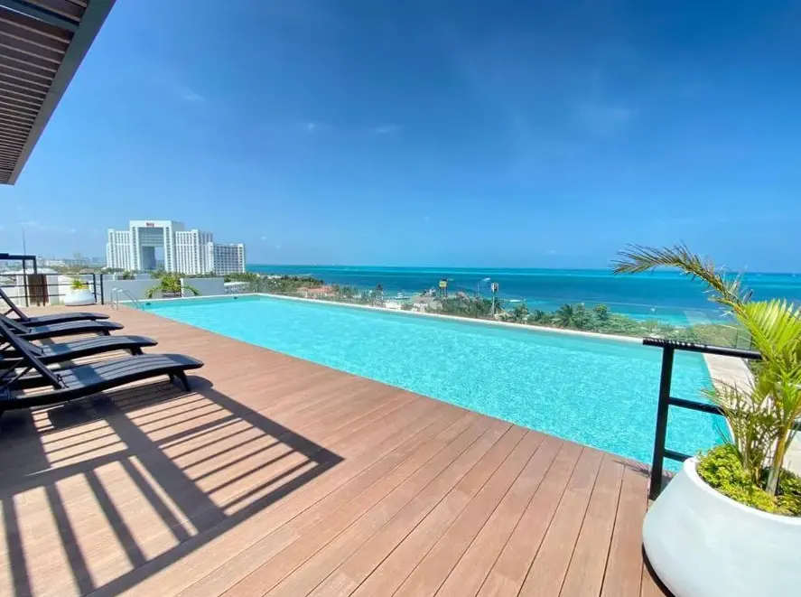 More information about Rentas PalReyPanoramic Penthouse offers modern accommodations located at Condominio Takh, Calle Cenzontle, Zona Hotelera, 77500 Cancún, México. The property features a terrace, outdoor swimming pool, air conditioning, non-smoking rooms, free parking, free WiFi, and elevator access. Guests can enjoy proximity to several attractions including Ancha Beach at 1.2 km, Caracol at 1.8 km, and Playa Linda at 2.1 km.