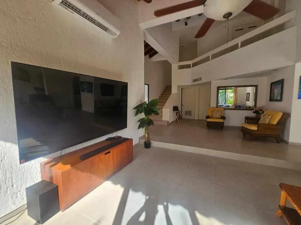 More information about Cancún PlazaVillas Nizuc, Villa 29 offers a fully furnished and equipped villa situated near the beach with easy access to local attractions. The three-story property features four bedrooms, including three with king-size beds and one with a king-size bed and an additional individual bed. Each bedroom includes its own bathroom, while a half bath is available on the first floor.