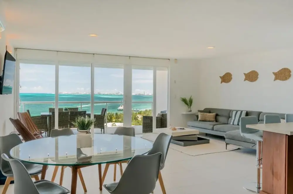 More information about Bonita y acogedora CasaWAVES Beachfront 2 BDR by Casa Paraiso offers a spacious and comfortable retreat located in Cancún, Mexico. This beachfront property features free parking, a terrace, and access to a private beach area. Guests can enjoy family-friendly accommodations including family rooms and an outdoor swimming pool.