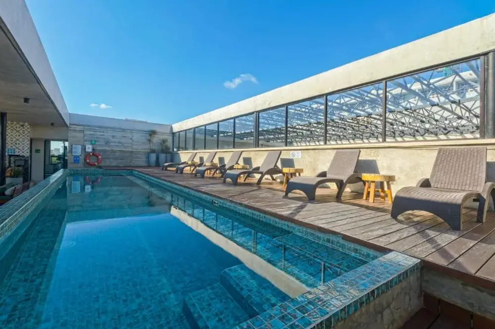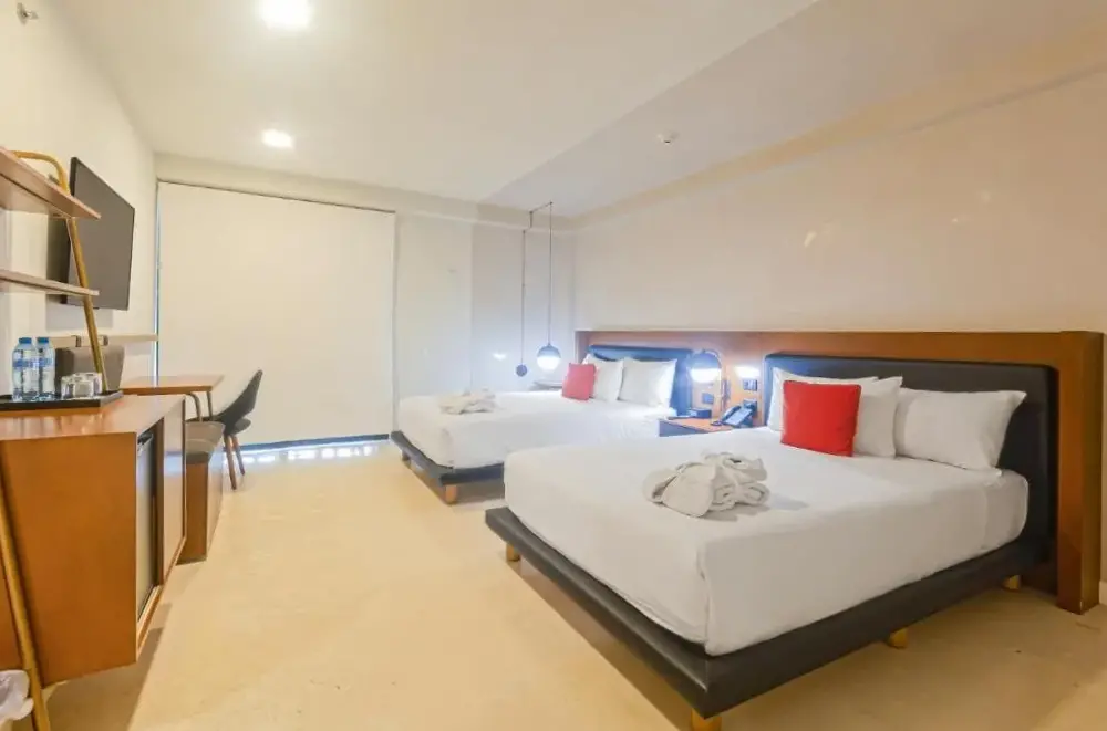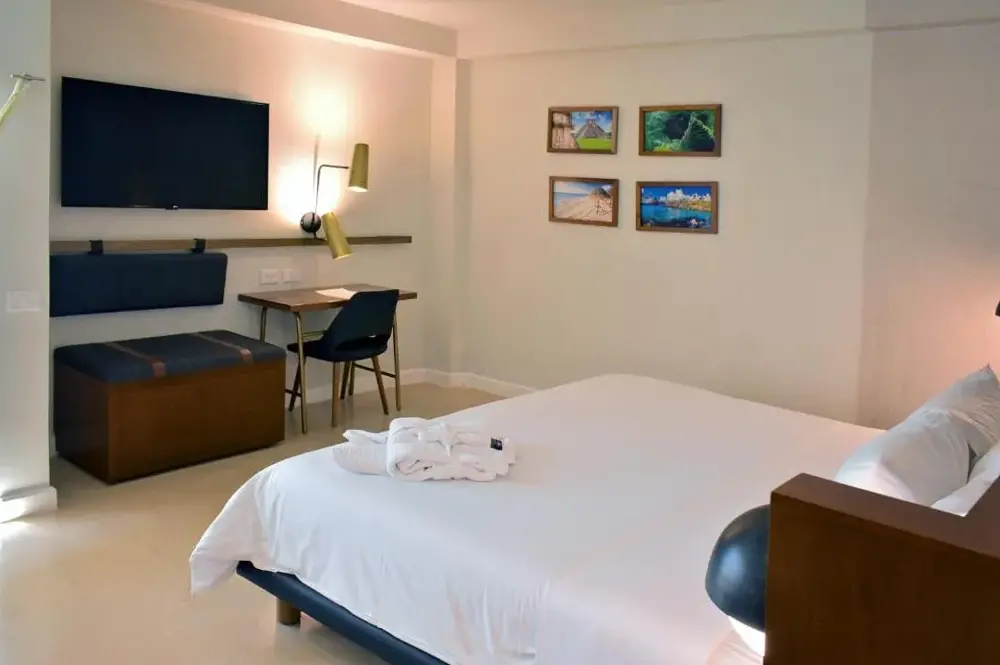 More information about Bed Away StudiosMex Hoteles offers convenient accommodations in Cancún, situated at Av. Carlos J Nader Lote 28, SMZ 05, MZ 11, Andador 5, 77500 Cancún, México. The property features free parking, an outdoor swimming pool, a restaurant, family rooms, a fitness center, a bar, and free WiFi. Guests can enjoy a complimentary breakfast and utilize the airport shuttle service.